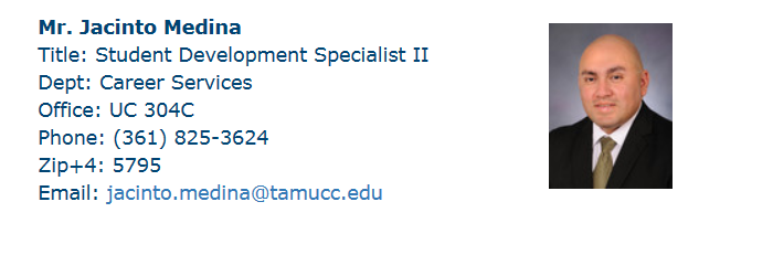 If you do not have an account set up, please follow the instructions above to create your account. If you have any questions regarding this process or other related Career Service opportunities, you may also schedule an appointment to meet with Mr. Jacinto (Jace Medina).