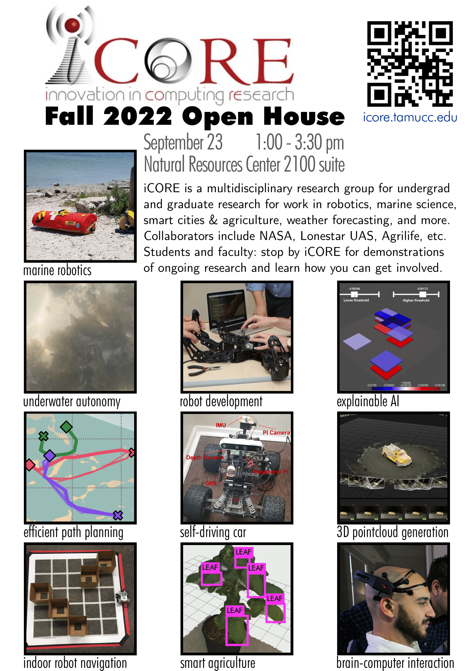 [cosc-grad-students-list] iCORE Open House - Friday 9/23/22 1-3:30pm - NRC 2100