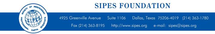 The Society of Independent Professional Earth Scientists is a national organization of more than 900 self-employed geologists, geophysicists and engineers engaged primarily in domestic energy exploration and development. SIPES has eleven chapters located in oil and gas centers of the United States. Applications for the SIPES Foundation Earth Science Scholarships are available on the SIPES website annually after March 1.
