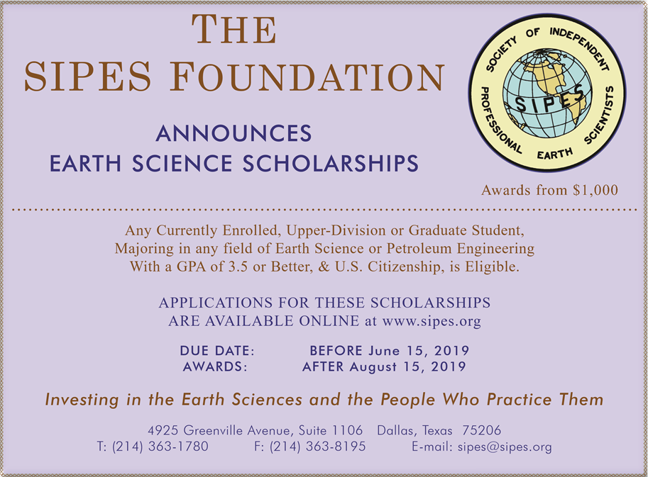 [geolstu-list] SIPES FOUNDATION 2019 Earth Science Scholarships