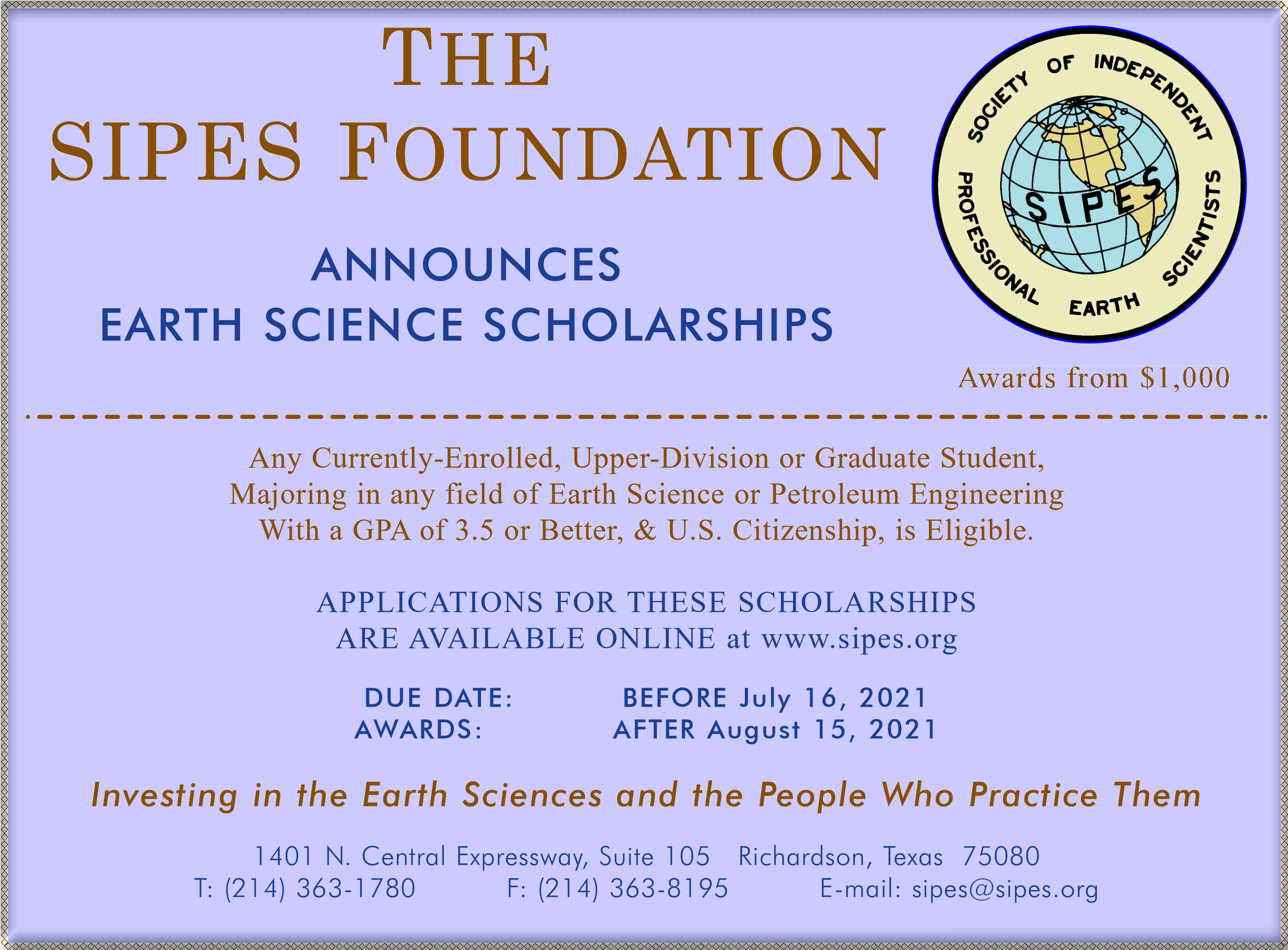 [geolstu-list] SIPES Foundation 2021 Scholarships for Geology Students